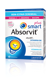Absorvit® Smart Plus é um suplemento alimentar composto por um extracto de Bacopa, Ómega-3, L-Arginina e alto teor de vitaminas do complexo B.